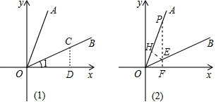(2)当k=2时(如图2),探究过程:OA上取一点P(1,2)作PF⊥x轴于F,交OB于E,作EH⊥OA于H,则