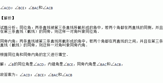 如图,∠B的同位角是 ,内错角是 ,同旁内角是 .