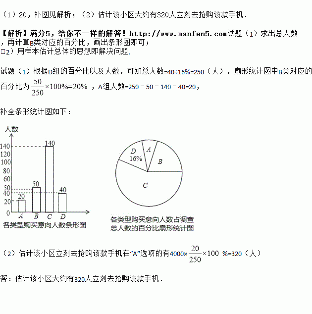 (2)若该小区共有4000人,请你估计该小区大约有多少人立刻去抢购该款手机.