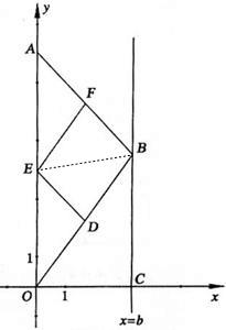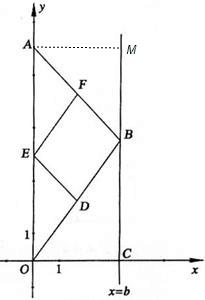 如图,在直角坐标系中,点A的坐标为(0,8),点 B(b,t)在直线x=b上运动,点D、E、F分别为OB、0A、AB的中点,其中b是大于零的常数.![]()