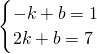 一次函数y=kx+b经过点(-1,1)和点(2,7).