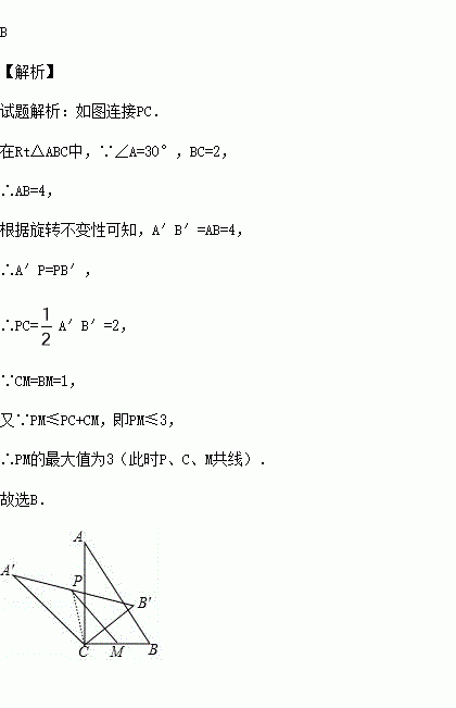 如图,在中, ,将绕顶点逆时针旋转得到是的中点,是的中点,连接,若,则线段的最大值是 ( )