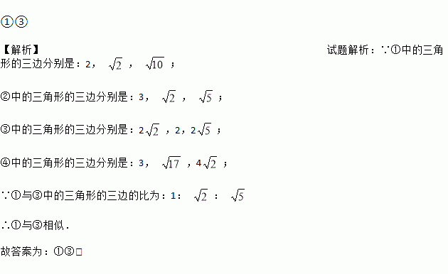 如图,在大小为4×4的正方形网格中,是相似三角形的是________(请填上编号).