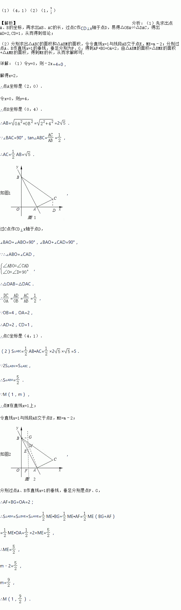 (2)在第一象限内有一点M(1,m),且点M与点C位于直线AB的同侧,使得2S△ABM=S△ABC,求点M的坐标.