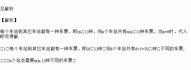 (2)如果共有n(n≥3)个站点,则需要多少种不同的车票.
