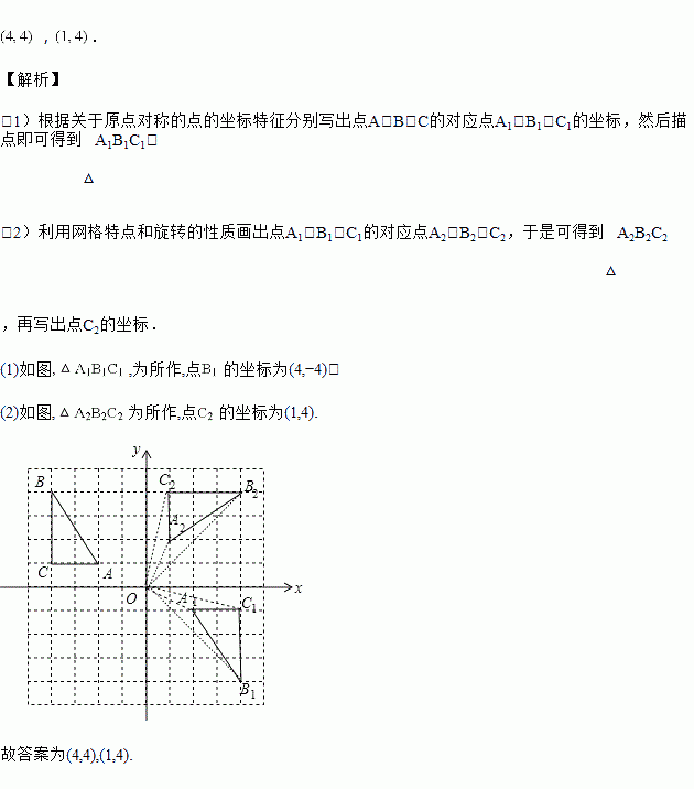 在如图所示的正方形网格中,的顶点均在格点上,请在所给的平面直角坐标系中按要求作图并完成填空:![]()