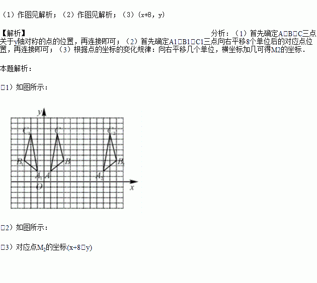 (2)画出△A1B1C1向右平移8个单位后得到的△A2B2C2。