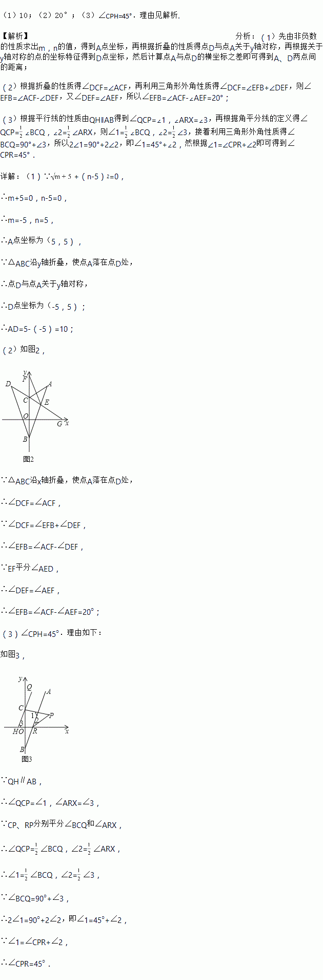 +(n﹣5)2=0,点C在y轴上,将△ABC沿y轴折叠,使点A落在点D处.