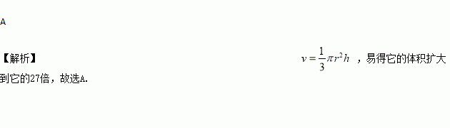 一个圆锥的底面半径和高都扩大到它的3倍,则它的体积扩大到它的( )