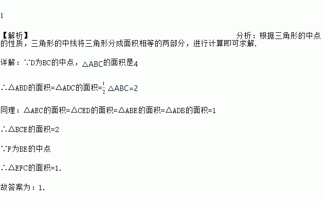 如图,△ABC的面积是4,点D、E、F分别是BC、AD、BE的中点,则△C EF的面积是____________.