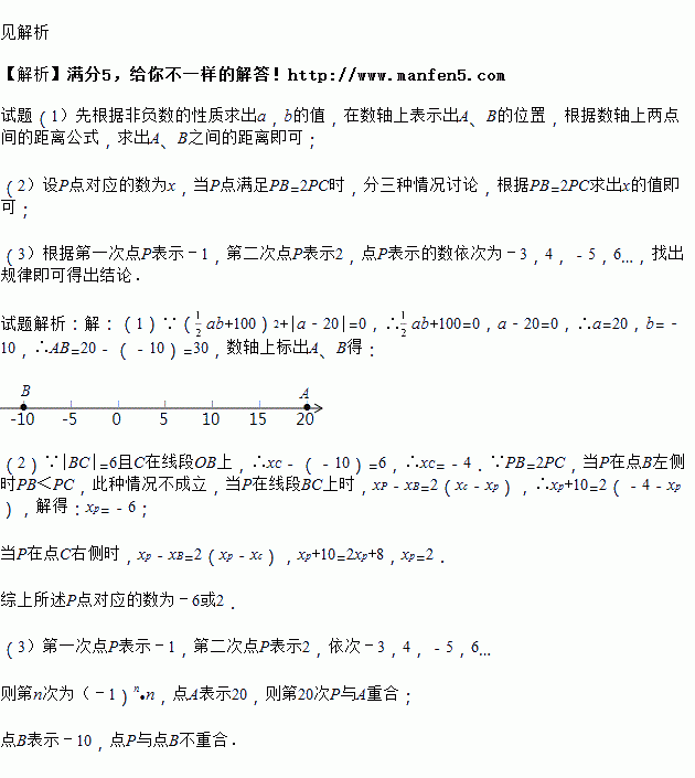 ab+100)2+|a﹣20|=0,P是数轴上的一个动点.