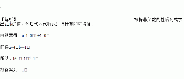 若|a-4|+|b+1|=0,则ba=____.