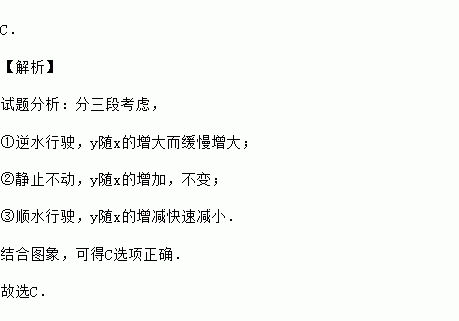某运输公司的一艘轮船在长江上航行,往返于万州、朝天门两地.假设轮船在静水中的速度不变,长江的水流速度不变,该轮船从万州出发,逆水航行到朝天门,停留一段时间(卸货、装货、加燃料等),又顺水航行返回万州.若该轮船从万州出发后所用的时间为x(小时),轮船距万州的距离为y(千米),则下列各图形中,能够反映y与x之间函数关系的大致图象是( )