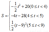 综上所述:S与t的函数关系式为: