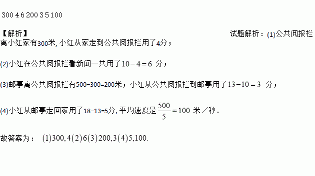 (1)公共阅报栏离小红家有______米,小红从家走到公共阅报栏用了______分;