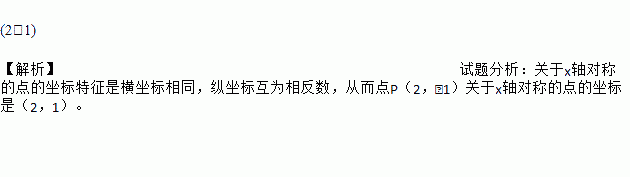 点P(2,-1)关于x轴对称的点P′的坐标是_____________.