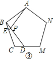 ②能.如图④,点E、D分别是正n边形ABCM中以C点为顶点的相邻两边上的点,且BE=CD,BD与AE交于点P,则∠APD的度数为$\frac{(n-2)•180°}{n}$.