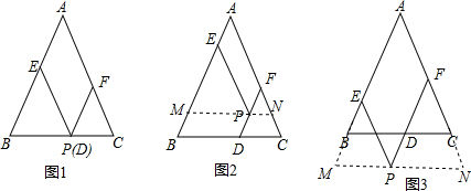 (3)过点P作MN∥BC分别交AB、AC于M、N两点,推出PE+PF=AM,再推出MB=PD即可.