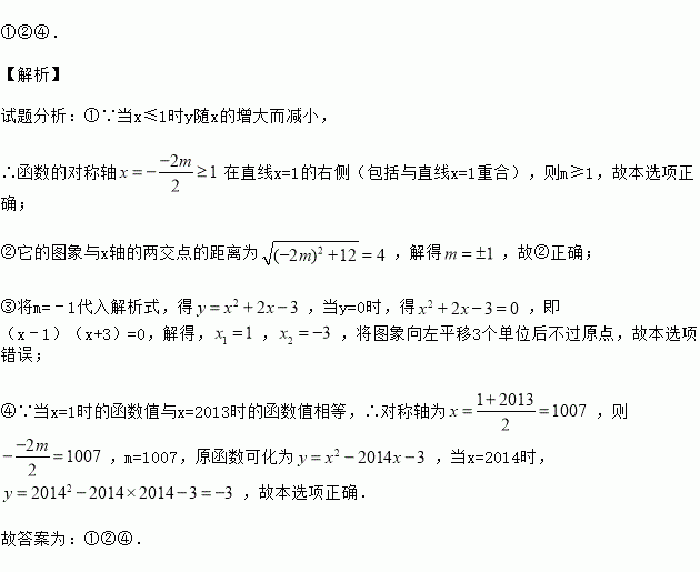 ④如果当x=1时的函数值与x=2013时的函数值相等,则当x=2014时的函数值为-3.