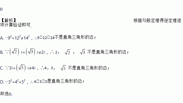 在三边分别为下列长度的三角形中,是直角三角形的是( )