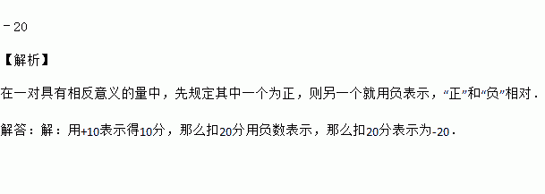 在知识抢答中,如果用+10表示得10分,那么扣20分表示为_____.