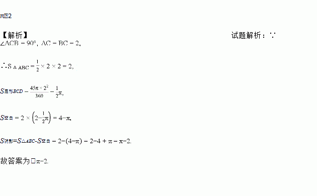 如图,在Rt△ABC中,∠ACB=90°,AC=BC=2,以点A为圆心,AC的长为半径作交AB于点E,以点B为圆心,BC的长为半径作交AB于点D,则阴影部分的面积为_____.