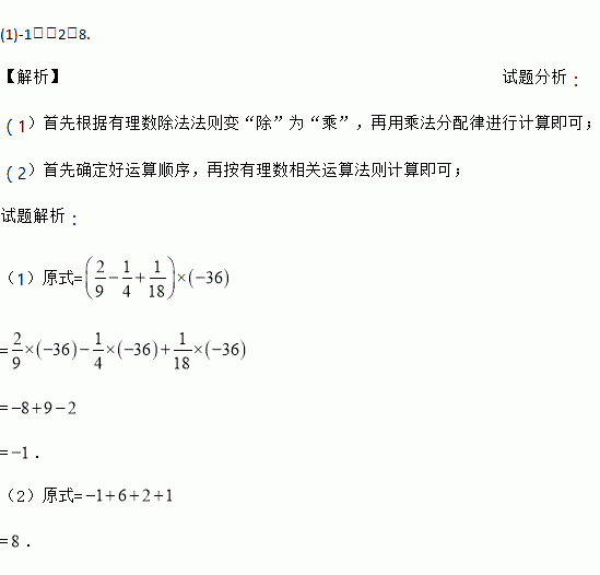 (1)( -+)÷(-); (2)-14-(-6)+2-3×(-).