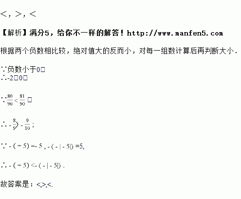 用“<”“=”或“>”号填空: