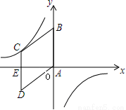 如图,在平面直角坐标系中,菱形ABCD的顶点A与原点O重合,点B在y轴的正半轴上,点C在反比例函数y=的图象上,点D的坐标为(-4,-3),边CD与x轴交于点E.