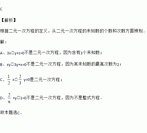 A.3x﹣y+z=0 B.xy﹣3y+x=0 C.x﹣y=0 D.+y﹣1=0