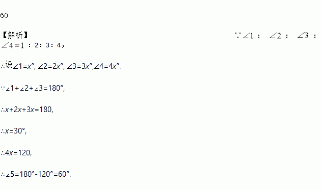 如图, 是同一直线上的三点, 是从O点引出的三条射线,且: : : :2:3:4,则______ 度