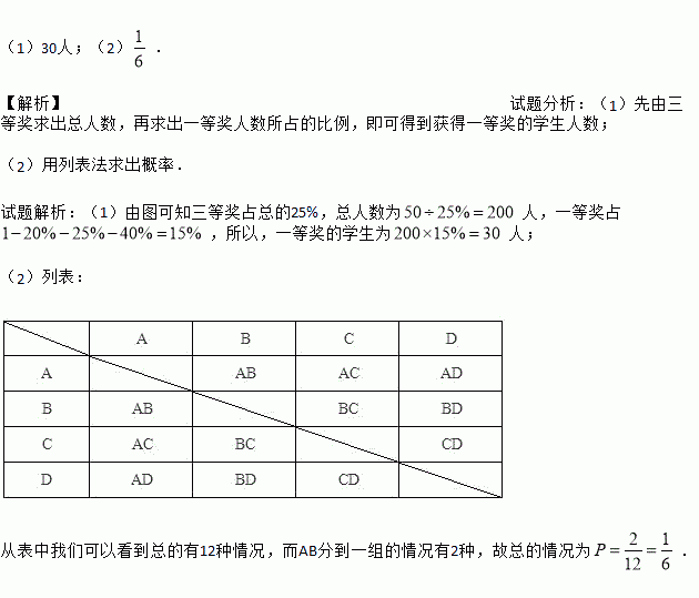 (1)获得一等奖的学生人数;