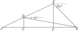“星光隧道”是贯穿新牌坊商圈和照母山以北的高端居住区的重要纽带,预计2017年底竣工通车,图中线段AB表示该工程的部分隧道,无人勘测飞机从隧道一侧的点A出发,沿着坡度为1:2的路线AE飞行,飞行至分界点C的正上方点D时,测得隧道另一侧点B的俯角为12°,继续飞行到点E,测得点B的俯角为45°,此时点E离地面高度EF=700米,则隧道BC段的长度约为( )米.(参考数据:tan12°≈0.2,cos12°≈0.98)