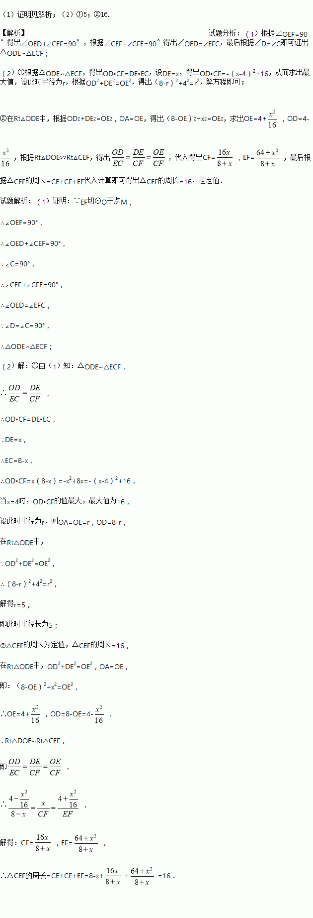 (1)求证:△ODE∽△ECF;