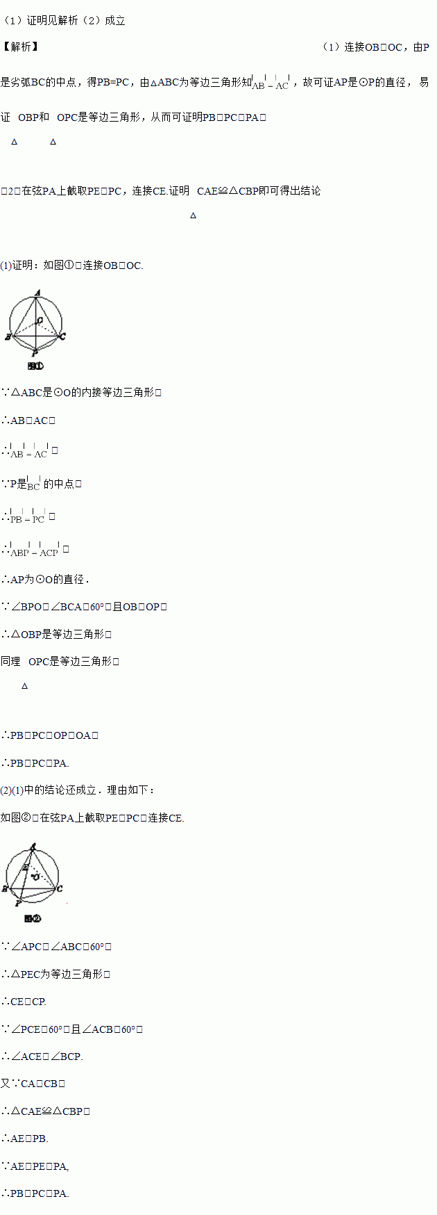 (1)如果P是劣弧BC的中点,求证:PB+PC=PA;