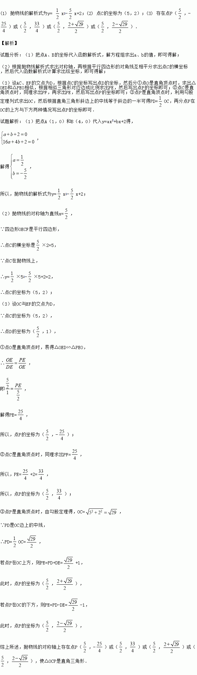 (3)在(2)的条件下,抛物线的对称轴上是否存在点P,使△OCP是直角三角形?若存在,求出点P的坐标;若不存在,请说明理由.