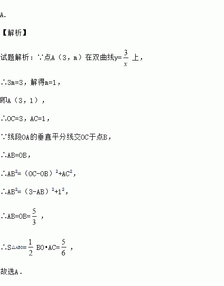 如图,点A(3,m)在双曲线y=