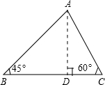 分析:过点A作AD⊥BC于点D,分别在RT△ABD和RT△ADC中求得BD、CD的长,则BC=BD+DC,由此其值就可以得到了.