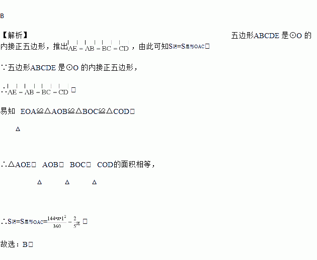 如图,已知五边形ABCDE 是⊙O 的内接正五边形,且⊙O 的半径为1.则图中阴影部分的面积是( )