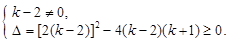已知关于x的方程(k-2)x2+2(k-2)x+k+1=0有两个实数根,求正整数k的值