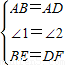 【答案】分析:(1)中易证AD=AB,EB=DF,所以只需证明∠ADF=∠ABE,利用同弧所对的圆周角相等不难得出,从而证明全等;