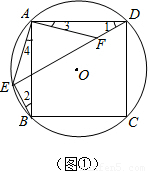 正方形ABCD的四个顶点都在⊙O上,E是⊙O上的一点.(1)如图①,若点E在