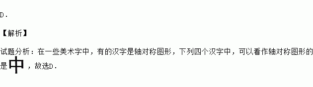 查看答案在一些美术字中,有的汉字是轴对称图形,下列四个汉字中,可以看作轴对称图形的是( )