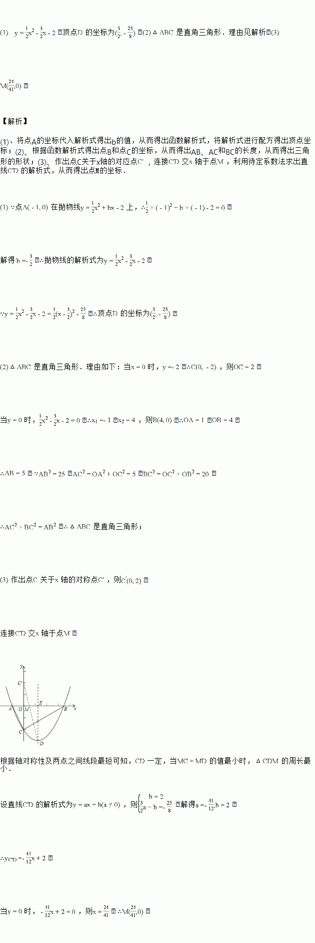 求抛物线的解析式及顶点的坐标;