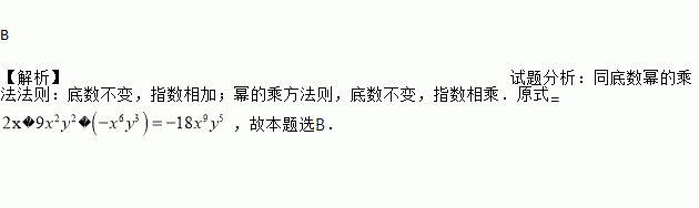 B 【解析】试题分析:同底数幂的乘法法则:底数不变,指数相加;幂的乘方法则,底数不变,指数相乘.原式=,故本题选B.