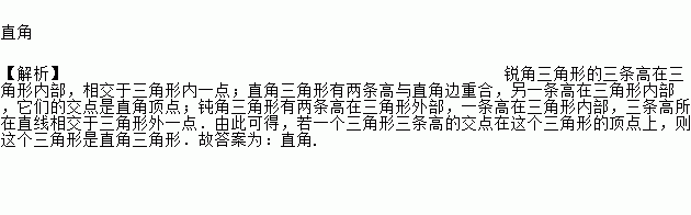 若一个三角形三条高的交点在这个三角形的顶点上,则这个三角形是________三角形.