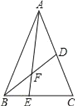 如图,在△ABC中E是BC上的一点,EC=2BE,点D是AC的中点,设△ABC,△ADF,△BEF的面积分别为S△ABC,S△ADF,S△BEF,且S△ABC=12,则S△ADF-S△BEF= .