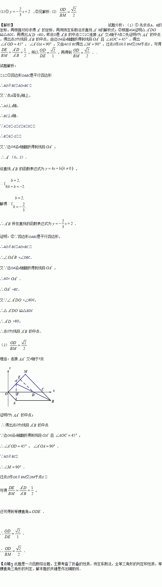 在平面直角坐标系xOy中,点C坐标为(6,0),以原点O为顶点的四边形OABC是平行四边形,将边OA沿x轴翻折得到线段