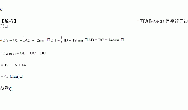 如图,已知是平行四边形的对角线交点,,,,那么的周长等于( ).