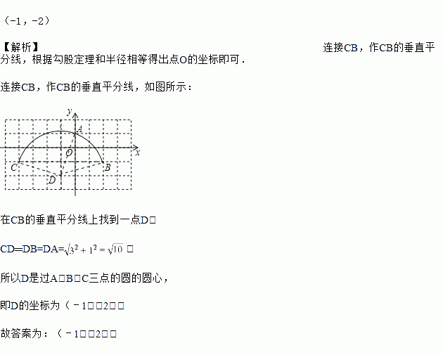 如图,方格纸上每个小正方形的边长均为1个单位长度,点O,A,B,C在格点(两条网格线的交点叫格点)上,以点O为原点建立直角坐标系,则过A,B,C三点的圆的圆心坐标为_____.